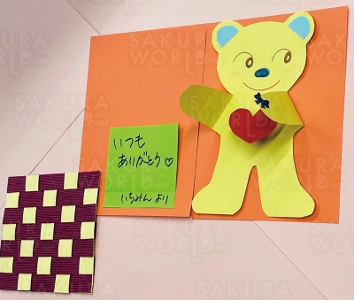 ちゃんと紙を編んだコースターとメッセージカードを作るワークショップ。