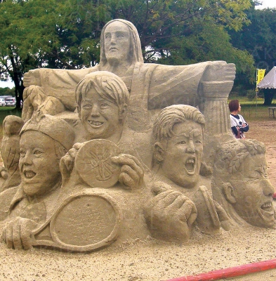 テーマにした砂の造形展。全国でも珍しい河岸砂丘の川砂を使ったサンドアートは
