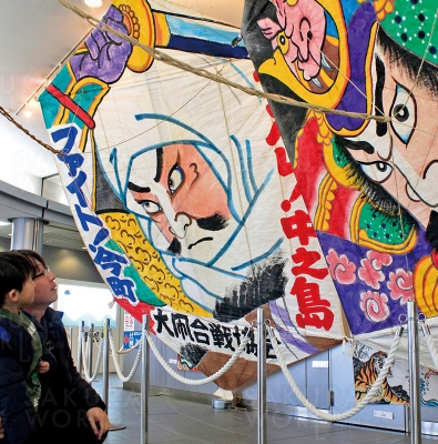 タワーの中では60点の凧の展示も楽しめます。(1/11~2/16)
