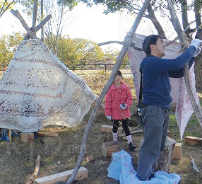 [日時]11月24日(日)、12月1日(日) (1)10時~12時(2)13時30分~15時30分 ※雨天中止 [場所]西口駐車場横芝生広場 ◎内容/園内で伐採された木等を使って、積み木のように遊んだり、 ティピ(インディアンハウス)を作って遊びます。 ◎料金/100円(保険料込) ◎定員/各回先着50名程度