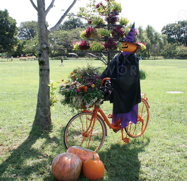 園内ではハロウィンをテーマに創作された様々な花のオブジェも楽しめます。