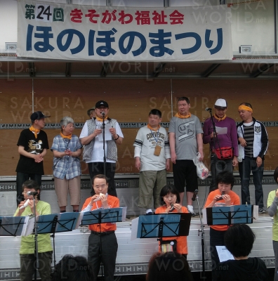 きそがわ福祉会の各事業所、関係団体、近隣施設などが集まり、屋外ステージや屋内展示、