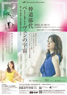 14時開演(開場13時) サラマンカホール(岐阜市薮田南5-14-53) ベートーヴェン没後200年記念プロジェクト[全6回シリーズ]の第1回。仲道郁代が、ベートーヴェンの音楽宇宙に迫る画期的新企画。 特別ゲストにヴァイオリン・南紫音を迎え、コンサート冒頭にはナビゲーター浦久俊彦のガイドトークを予定。