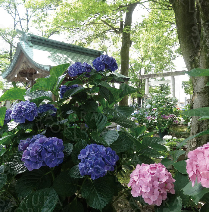 あじさいが美しい季節になりました。御裳神社でも70種類8,000株のあじさいが