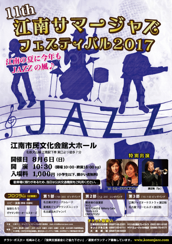 問合/江南サマージャズフェスティバル実行委員会 tel.090-2938-5105(竹村)