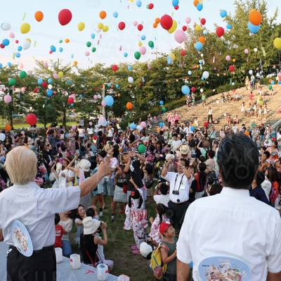 平和への願いを込めた「平和風船飛ばし」や、市民団体によるステージイベント、参加者が一体となる盆踊り、