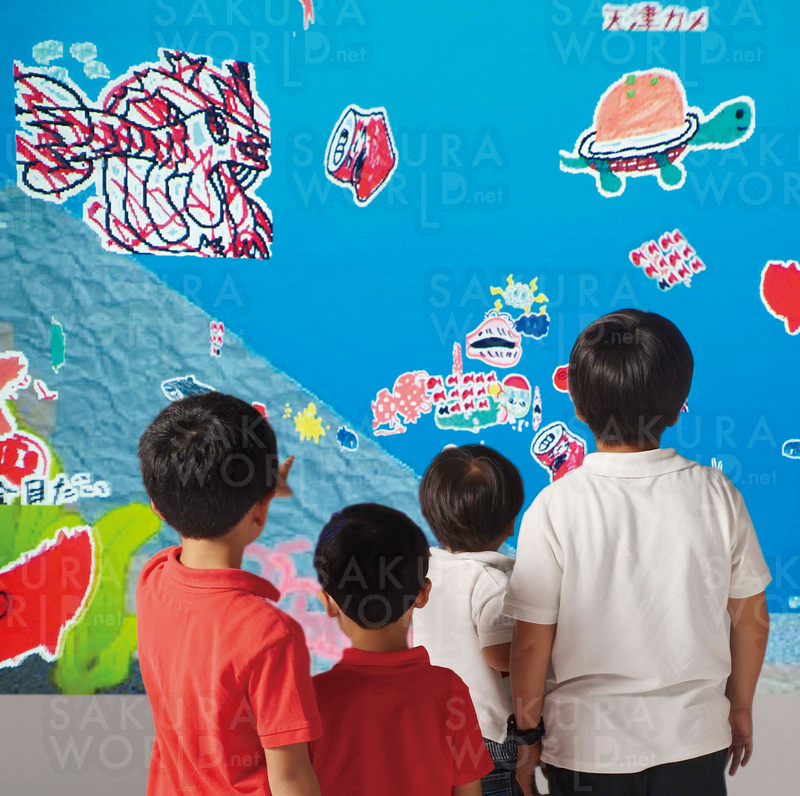 描いた絵は、デジタル水槽の中でスイスイ泳ぎ回りまるで命が吹き込まれたよう。