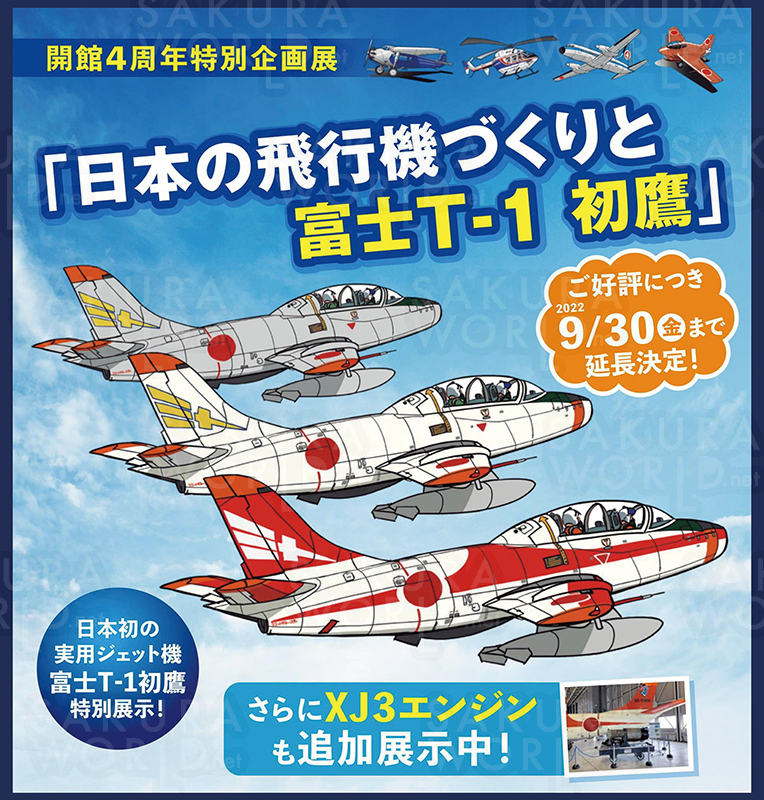 国産飛行機開発の歴史と我が国初の実用ジェット機・富士T-1初鷹の物語をわかりやすく解説!実機の展示と航空イラストレーター“リタイ屋の梅”氏が描くイラストストーリーの絶妙なコラボでお届けする新感覚の企画展です。 ◆入館料/【2023年度3月まで・個人入館料20%OFF】一般800円、大学・高校生640円、中・小学生400円、未就学児は無料 ※記載の料金は20%OFF適用価格です ◆休館日/火曜(祝日の場合は翌日)