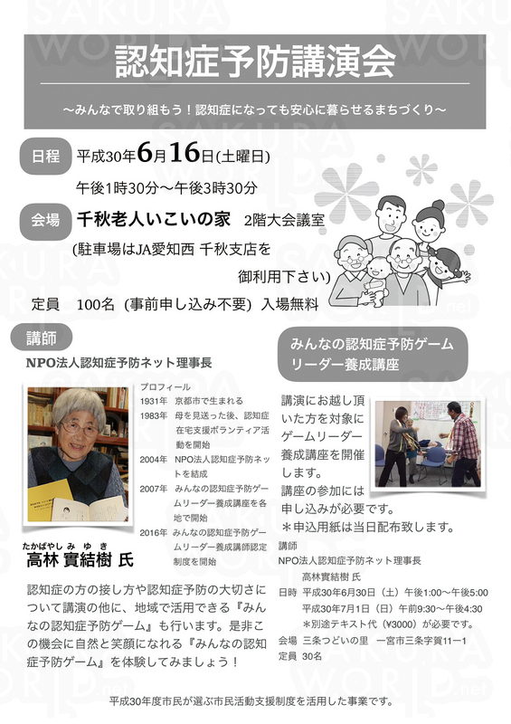 問合/認知症予防ネット一宮 Tel.0586-81-2858(日栄)
