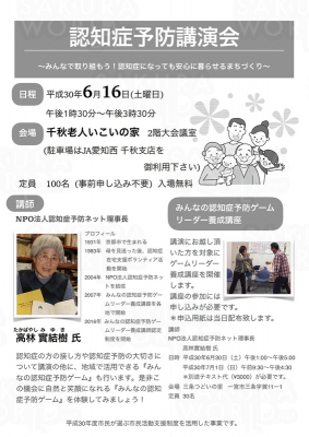 「みんなで取り組もう!認知症になっても安心して暮らせるまちづくり」をテーマに認知症予防講演会を開催。