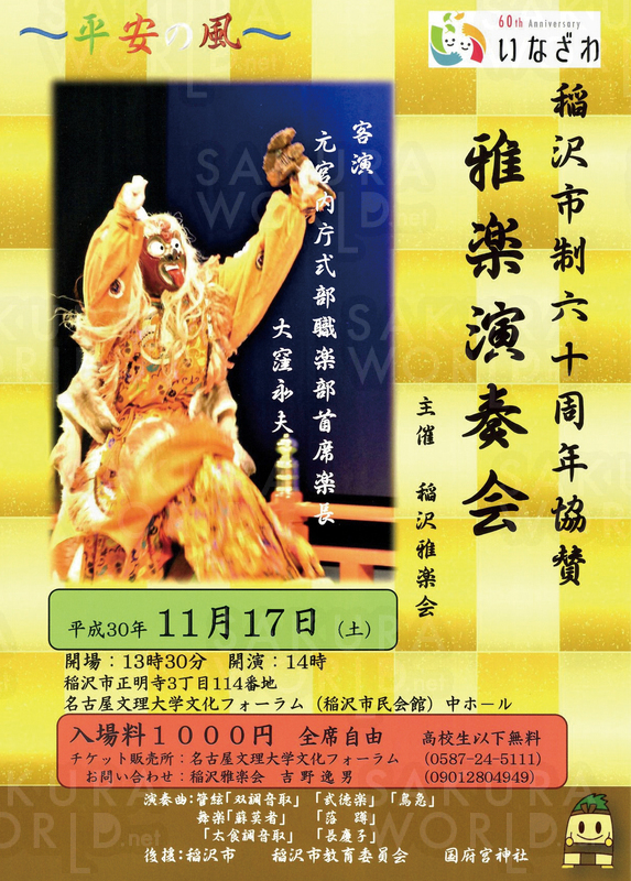 問合/稲沢雅楽会 tel. 090-1280-4949(吉野)