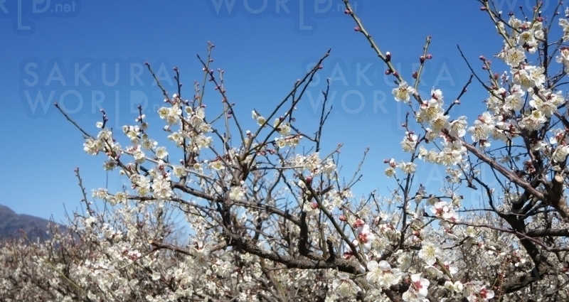 養老山地の麓を流れる津屋川沿いに広がる梅林。ここは氷砂糖メーカーが所有する実梅を採るための梅園で、約1万坪の敷地内に約500本の梅の花が一斉に咲き誇ります。 町営公園とつながって一般開放されているため、地域の散策道としても親しまれ、梅の花見を楽しみながらのんびりと散歩することができます。