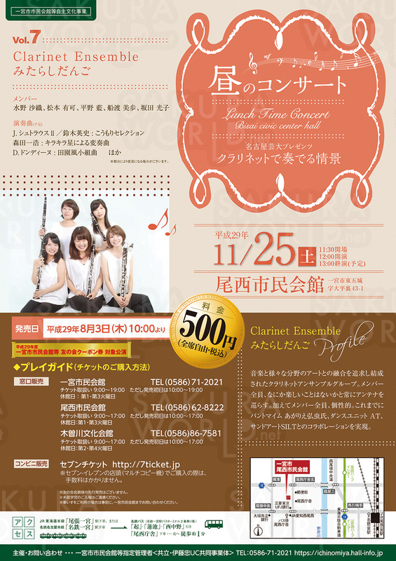◆チケット/一宮市民会館・一宮市尾西市民会館・一宮市木曽川文化会館、セブンチケット(http://7ticket.jp)
