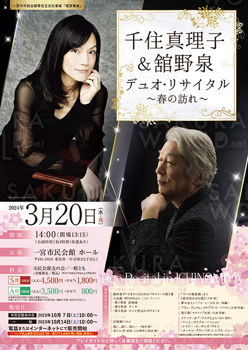 千住真理子、舘野泉ならではの深みのある演奏をご堪能ください。