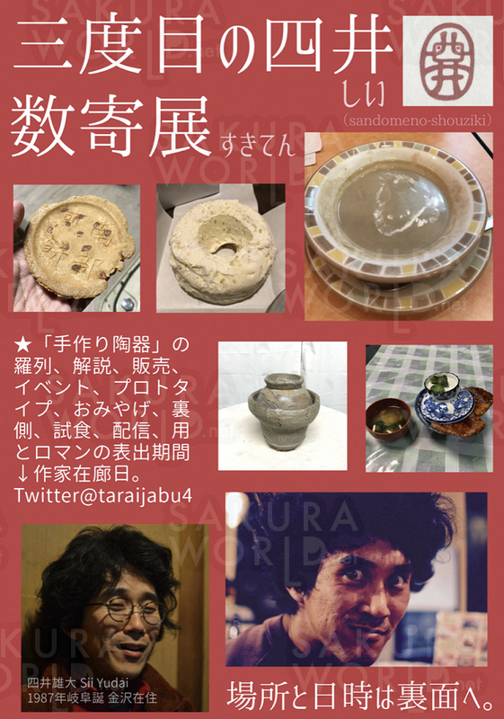 2/16(土)~3/3(日) ★「小澤順一陶展‐いろいろ‐」では色絵のカップ、皿、レンゲ、お雛様などいろいろな作品を展示します。 「四井数寄展」は金沢市在住制作の陶芸家・四井雄大による三度目の個展です。 「手作り陶器」の羅列、解説、販売、イベント、プロトタイプ、おみやげ、試食、配信などがあります。