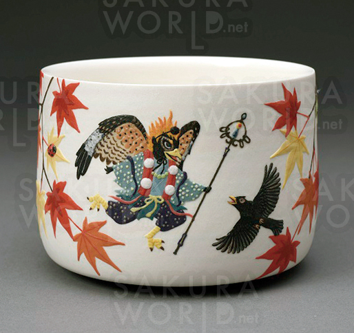 上の画像は小林佐和子さんの作品、練上彩層茶碗「カラス天狗」。