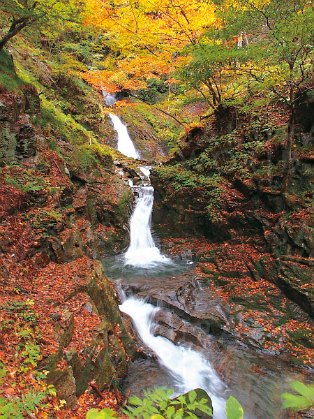 水と地球が創り出した神秘の造形、長野県の紅葉の横川渓谷をハイキング。