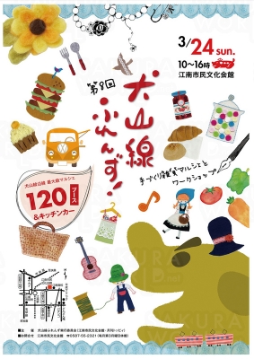3月24日(日) 時/10時~16時 所/江南市民文化会館各所(江南市北野町川石25-1) 犬山線沿線のお店が集まるマルシェ『犬山線ふれんず』。今年も開催します! 地元作家さんによる手作り雑貨を中心にパン・お菓子など約120ブースが出店。 キッチンカーやワークショップコーナーもあり、一日中お楽しみいただけます。 麗らかな春の一日、お散歩がてらお越しください。
