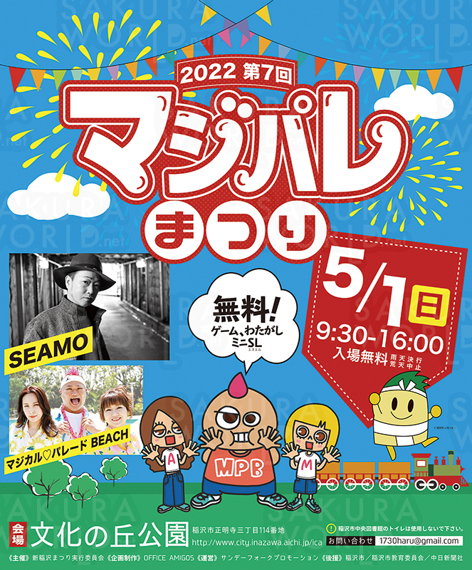 飲食・物販・体験ブースが60以上!ステージイベント盛りだくさん♪わたがし、ポップコーン、景品付ゲーム、ガラガラくじが無料。ミニSL、はしご車、パトカー働く車も大集合!ふわふわ滑り台にマルシェもあるよ! 子どもからお年寄りまでみんなで楽しめます。※荒天中止。中止の場合は、公式ブログ(https://ameblo.jp/shin-inazawamatsuri/)にてお知らせします。