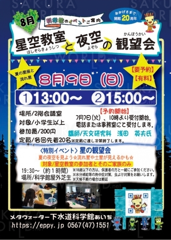 そして教室参加者とその家族を対象とした「星の観望会」(19:30~)を開催。