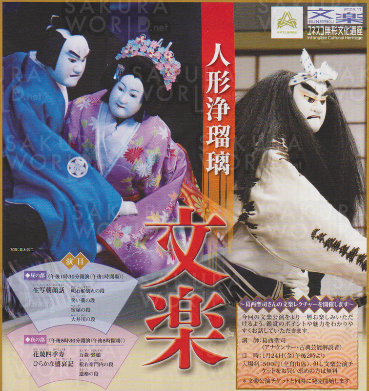 全自由席/500円(文楽公演チケットをお買い求めの方は無料)