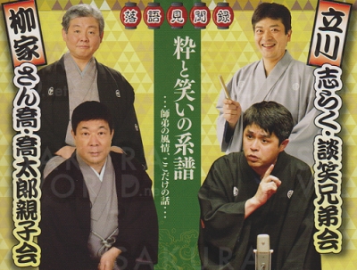 ★「さん喬・喬太郎親子会」 10/9(日)14時開演 場所/扶桑文化会館 ★「志らく・談笑兄弟会」 11/3(木・祝)14時開演 場所/扶桑文化会館 全席指定(1回券)/S席3500円、A席2500円 ※シリーズ券は2公演分のチケット料金より1000円引き。(前売券販売中) 前売券販売場所/扶桑文化会館、チケットぴあ(「さん喬・喬太郎親子会」Pコード/452・222) (「志らく・談笑兄弟会」Pコード/452・224)