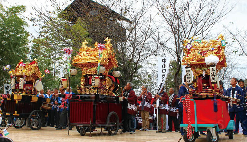 ※雨天中止、予備日11/14(土)。 場所/小口城址公園(丹波郡大口町城屋敷1丁目261番地) 各地区の獅子屋形による祭囃子、木遣り、手拭き投げ(河北地区)、 保育園児による和太鼓披露を行います。 特別出演として、安良棒の手保存会による「安良の棒の手」が披露されます。