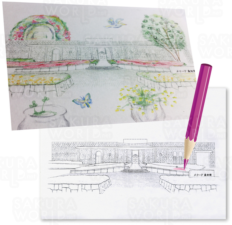 ★メナード美術館の外観が線書きされたワークシートをメナード美術館のWEB(http://museum.menard.co.jp/topics/2017.html)から