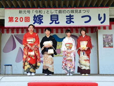 「嫁見まつり」とは、この1年間に結婚したお嫁さんがお姑さんに伴われて、旧正月25日に曼陀羅寺に参拝する伝統行事です。この行事を藤まつりのイベントとして開催します。