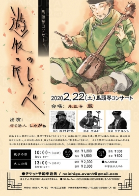 モンゴルの伝統的な弦楽器「馬頭琴」を今に伝える貴重な演奏者が来日。