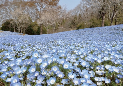 3月下旬頃からは3,000㎡の敷地に80,000株の青い花の海「ネモフィラガーデン」が見ごろの予想です。