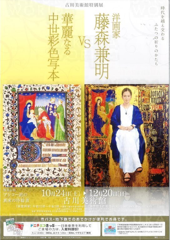洋画家・藤森兼明(1935-)が魅了され、その近作を華やかに彩る彩色写本。本展は、中世彩色写本とそれをテーマとした藤森作品を一堂に会し、時代と国を越えた美の共演をお楽しみいただきます。最大の見所は、古川美術館の秘宝、彩色写本『ブシコー派の画家の時禱書』(1412年頃)の3年ぶりの特別公開と、その美に触発された藤森兼明の2020年新作「アドレ―ション オブ マギ」(初公開)です。600年の時を越えた美の交流とその輝きをご堪能ください。