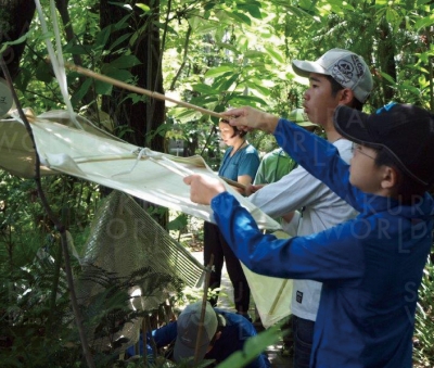 名古屋大学構内でムシを採集し、実体顕微鏡、走査型電子顕微鏡を使い微細構造の観察をしながら分類や働きを学びます。