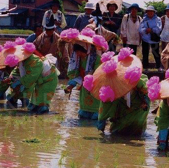 5月7日(日) 時/10時 所/真清田神社齋田(一宮市北小渕道上) 大正4年(1915)から100年以上続く伝統行事「御田植祭」。 祭りの起源は、苦しい田植えの作業を歌いながら行ったことが始まりで、 その風習が後に田の神を祀って豊穣を願う祭事になったと言われています。 祭りには、地元の小学生らが、早乙女・作男の衣裳を身にまとい、 お囃子に合わせ早乙女は田舞を、作男は歌を歌い豊作を願います。