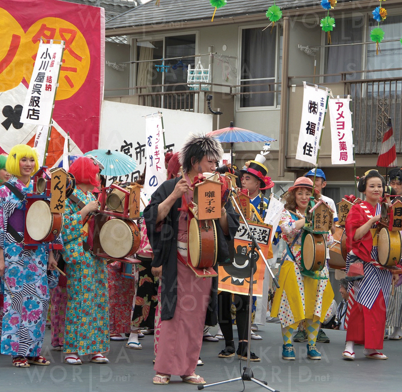 午前中には、チンドンコンクールが行われ、独創的な衣裳やメイクのチンドンマン達がアピール合戦!